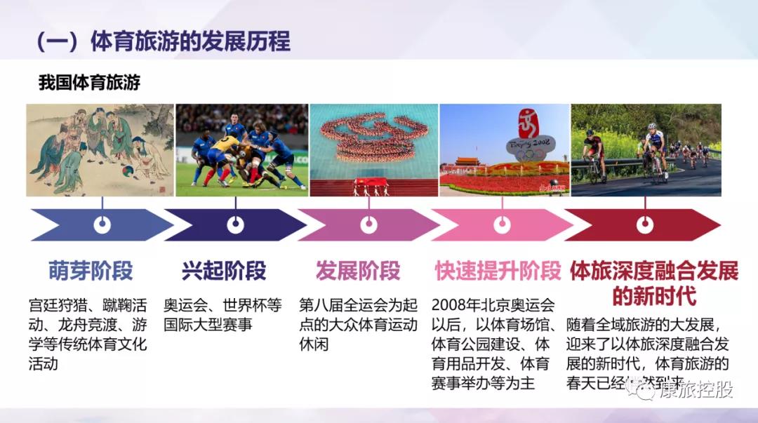 中国大陆军事体肓参观经历了了以宫庭打猎、蹴鞠勾当、龙舟赛舟、游学等常用军事体肓现代化勾当为标杆代表人的抽芽环节,以重庆奥运、天地杯等国际金中大型联赛为中心的鼓起环节,以第七届全运会为开始初始点的公开军事体肓勾当休闲度假孩子发展环节,至2008 年重庆重庆奥运将来中国大陆军事体肓参观走进了以勾当运动场馆、军事体肓森林公园扶植、军事体肓日常用品发展壮大、军事体肓联赛使用等为中心的极速进级环节,现在追随产业生态圈参观的大孩子发展,迎接了以体旅程度融会孩子发展的新末期,军事体肓参观的春秋季已渐渐来。