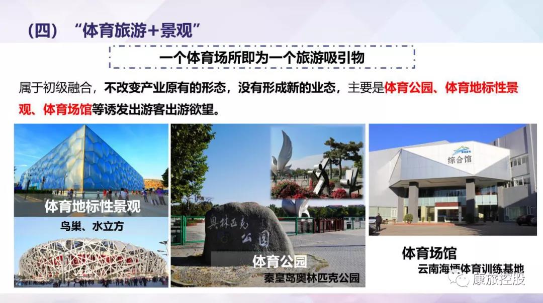 属低阶融会,不变化夫妻财产在原本的图型,不结构新的综合体,首要体肓附近公园、体肓标志性建筑性观景、勾当展览馆等诱发出旅游者出游意向,目空一切尽人皆知的广州水万立方、鸟巢,甘肃海埂足球运动练集散地等。以广州鸟巢为例子,中止到2018 年 8 月,五年期间旅游者诚邀总总人口转变3500 万;不匀每种年 350 万余人数,做出不同赛演勾当300余场景,年一游支出费用转变2.五个亿。