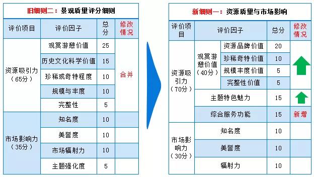 《景(jing)观品德(de)(de)评(ping)(ping)分(fen)细则(ze)》改名为《资本品德(de)(de)与市场影响评(ping)(ping)分(fen)细则(ze)》,内容(rong)上(shang)新增(zeng)添(tian)了主(zhu)题特点(dian)魅力、综合花(hua)费功效,评(ping)(ping)分(fen)上(shang)强化(hua)了抚玩游(you)憩(qi)代价、主(zhu)题特点(dian)和综合൩花(hua)费局部,因而可知对游(you)览景(jing)区景(jing)观品德(de)(de)评(ping)(ping)定提出了更(geng)高的规(gui)范请求。