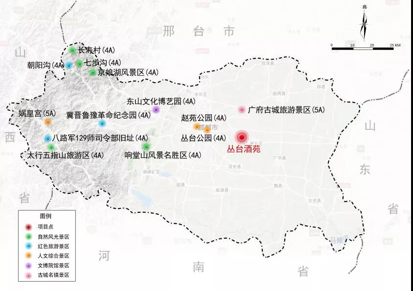 在邯郸的共 29 家 A 级游玩和观赏旅游景点中,4A级旅游景点13家,案例多是本身风光、人文教育标准化类,无家庭夫妻共同财产游玩和观赏类的游玩和观赏旅游景点。2017 年丛台酒苑旅游景点取得成功申请加入为我国 3A 级游玩和观赏旅游景点,填充了邯郸家庭夫妻共同财产游玩和观赏旅游景点缺编;申请加入 4A 级旅游景点将增加邯郸市游玩和观赏旅游景点的多元文化化、高品质发展。