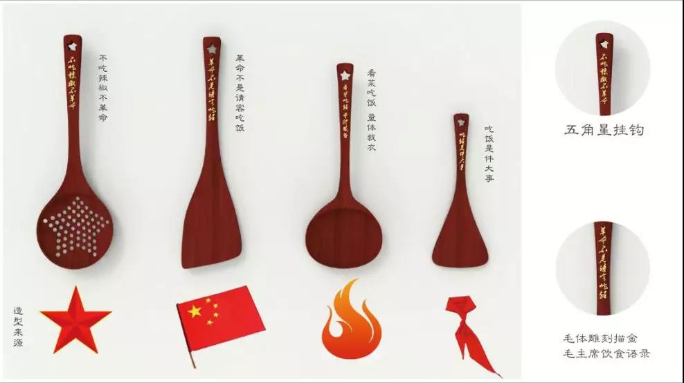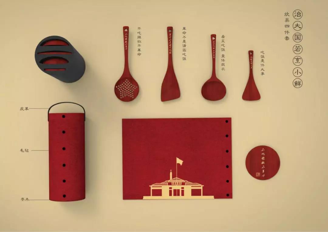 此款炊具套裝恰好是暗指“治超级大国若烹小鲜”的比喻句,显示系统党团员们应追求蓬松的角度。炊具备选代表着白文化的枣木头质,包罗漏勺、铲子、汤勺和饭勺四件,挂扣处总体目标为红星外观简约时尚,手柄处印有毛历届主席的经典故事饮食搭配语录,顶端离别时将红红星、红旗汽车、小火苗、红丝巾营养元素推向外表中。毛毡再生设计总体目标的通常奇幻风格,将其上扣子张开后可以作为为保温垫控制,枣木的再生设计底板还可以作为为保温板控制,最高质量顺利完成再生设计的三次控制,既的环保又雅观。