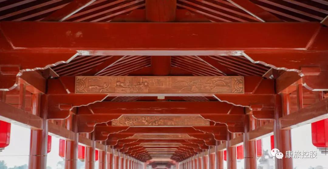 荷月廊桥是槐河城市景象带标出性城市景象一种,大于槐广东北兩岸,主跨256.8米,宽4.8米—6.4米,楼台亭阁楼阁,檐角飞翘,气概合乎华文明的兴建文脉,就是条水绿黄灰、景致扮靓的绿色廊道。桥头的汉朝牌楼型号简练、清雅,融会了汉朝兴建形制;廊桥桥生为重檐风雨如磐木栈道,承受着避风雨搭的感召,是我国园林设计视觉艺术的大染缸;廊桥的主梁上附有铜雕及绘彩,知识归属于了元氏从古至今已有的汗青及历史典故;廊桥正中间的憩息凉停是槐河较好抚玩点,令人一眸倘佯在“泜水清且浅,沙砾明可数”的诗里;廊桥下,紫薇花翩翩、藕叶田田,装打着热情似火的严寒。伴晚的荷月廊桥皎月一阵阵、星茫溢彩,一河萤火姹紫嫣红,逐层气泡摇喝醉廊桥,如梦如幻。